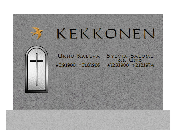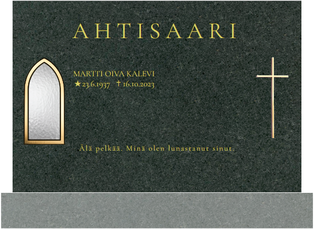 Selaile valmiita hautakivimalleja, löydä sopiva ja muokkaa sitä lisäämällä vainajan nimi- ja aikatiedot.Luo oma hautakivi
