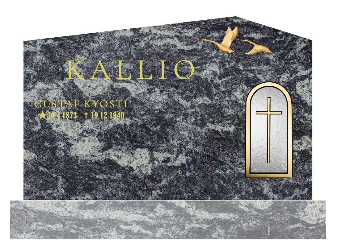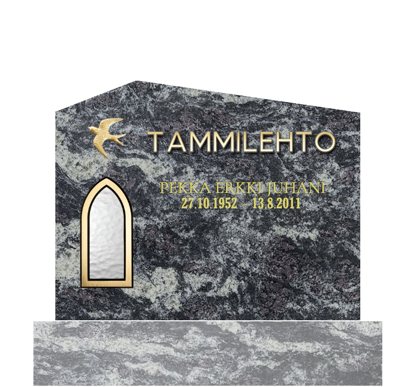 Selaile valmiita hautakivimalleja, löydä sopiva ja muokkaa sitä lisäämällä vainajan nimi- ja aikatiedot.Luo oma hautakivi